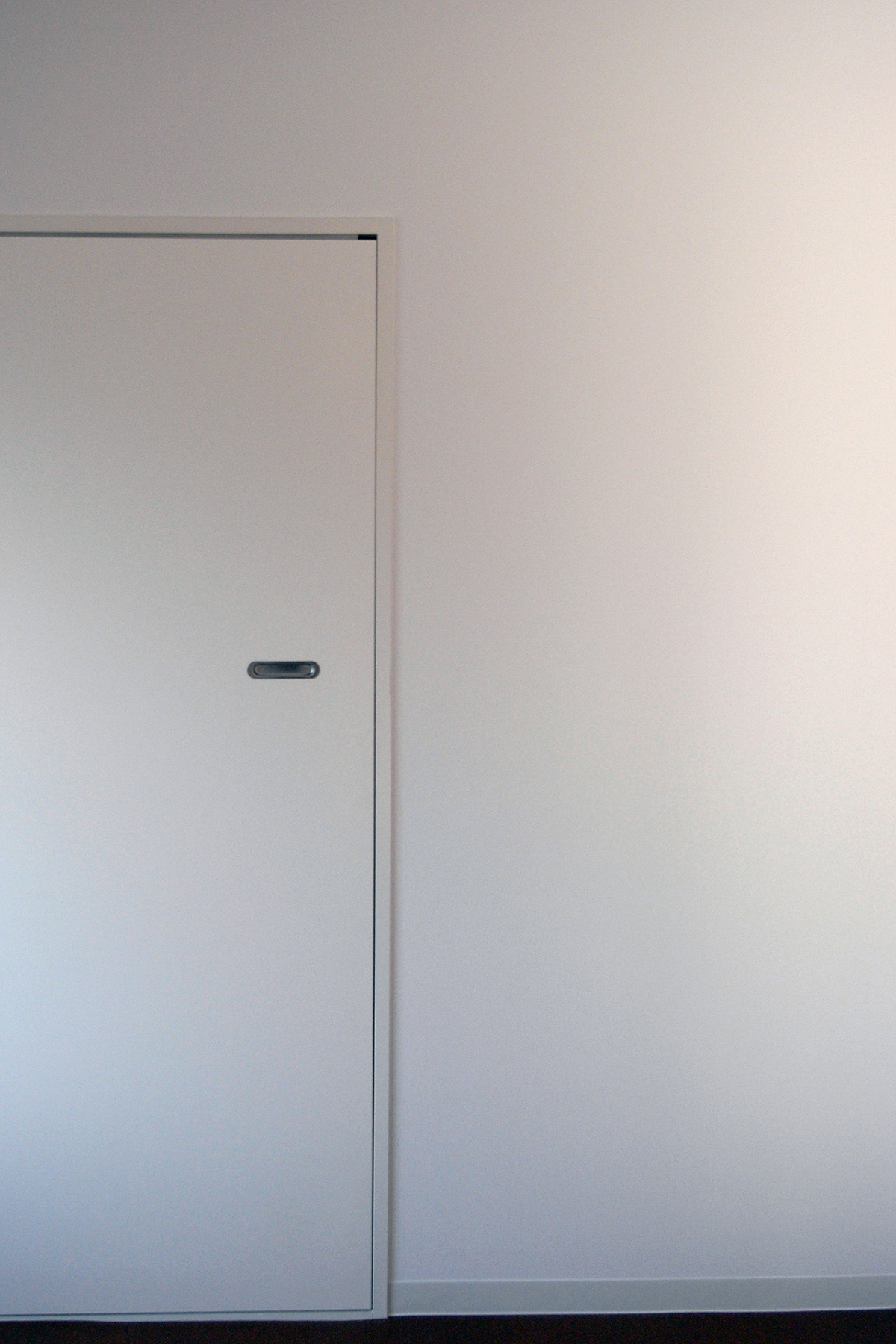 朝顔の双葉のような色の本棚の書斎があったり、8月の夕方の東の空のような色の扉があったり。白色を基調とした家の中を回遊していると、壁や天井等に幾つか違う色を発見する。床の大部分は、セラミック塗装されたコルクタイルが貼られている。
