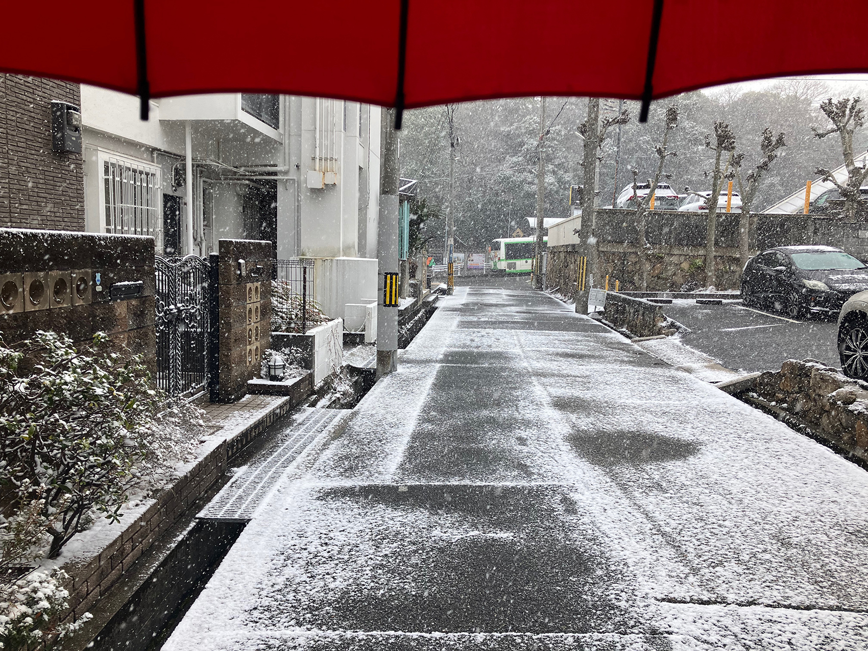 事務所へ出かけ雑務をと思って外に出てみると思いの外雪が降っていた。