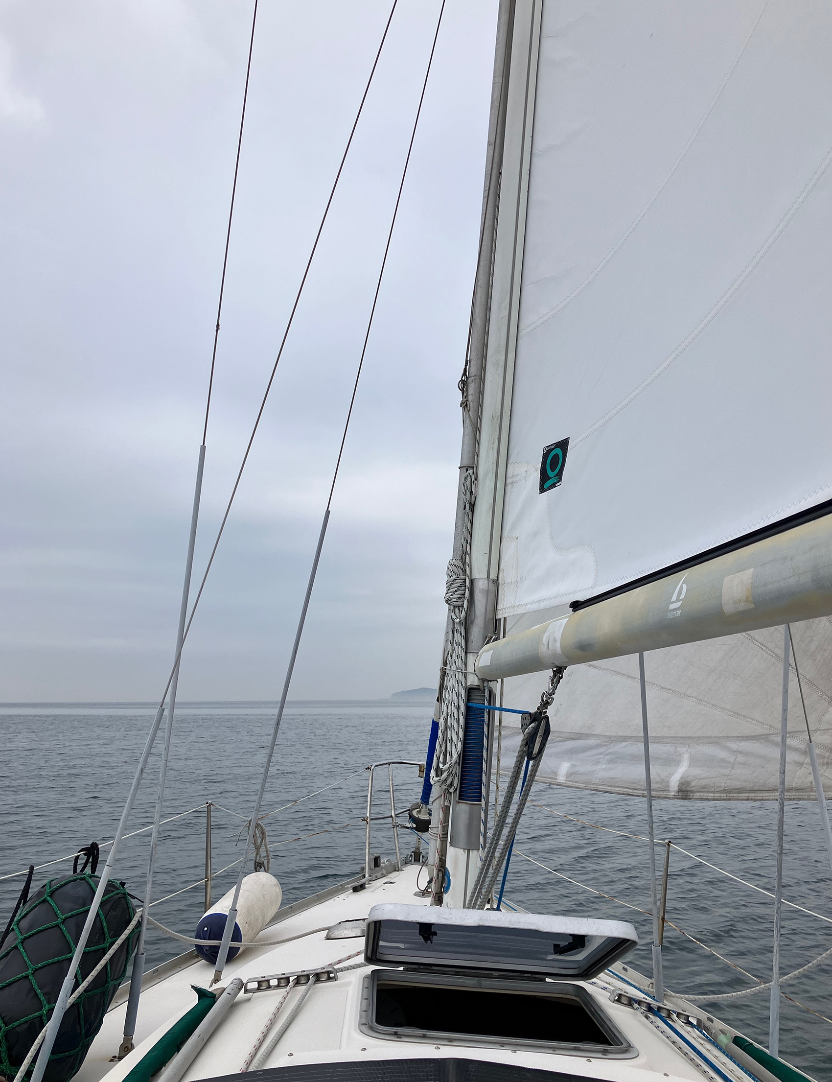昨夜は、深夜まで映画を観ていたから目が覚めたら午前9時半。波も風もなく穏やか。朝日が差しているから暖房なしでも過ごせる。朝食を済ませ今年中にメンテナンスする箇所の写真を撮っておく。お昼前に出航準備を済ませデイセーリングに出かける。舫の数が多いので出航までの準備に手間取る。それが出航意欲の妨げになるといけないのでできるだけ簡単に出かけられるようにと色々と工夫を。港を出ると松林の中をランナーが走っている。今日は淡路島一周するいわゆるアワイチ150KMの大会があるはずだから走っているのは自転車のはずだが・・・。と思い調べてみるとどうやらマラソン大会も行なっているようだ。その数300名。アワイチも300名出場だから帰りは相当渋滞しているかも。ということで日が沈んでから島を後にすることに。