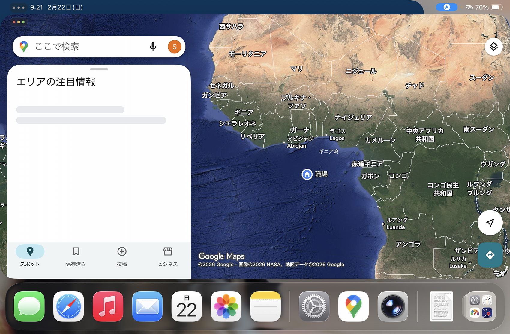 先日のセーリングでiPadにインストールしている電子海図が動かなくなった。海図自体は表示されるのに現在地が出てこない。何が原因なのか全く不明。GoogleMapは動くのかと思いチェックしてみるとなんと職場がギニア湾上を示している。これは、iPad本体の問題なのかもしれない。出かける前にチェックした時は、自宅を位置し、ヨットに乗り込んだ時はヨットを位置し、さぬき市に着いた時はさぬき市を位置していた。そして今日確認するとまた神戸を位置している。ひょっとしたらエンジンが発する何かが影響しているのか・・・。何れにしてもきちんと解決したい。